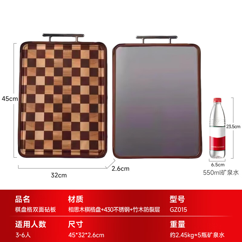 好管家棋盘格相思木菜板,双面实木+不锈钢设计,抗菌防霉,家用厨房必备。现价仅 186 元,超好评率 98%。立即购买!