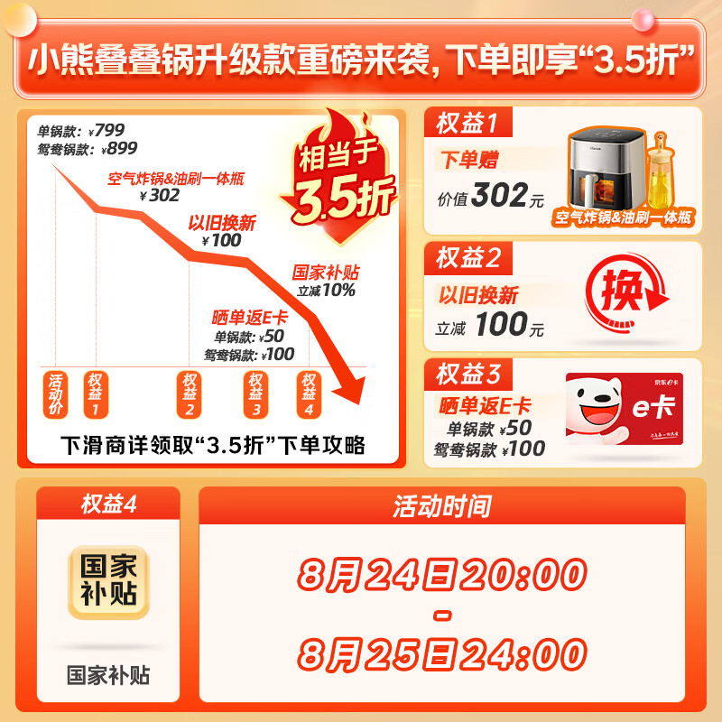 【限时特惠】小熊叠叠锅3.0 只需 1039 元,折叠多功能电蒸锅让家庭料理更轻松