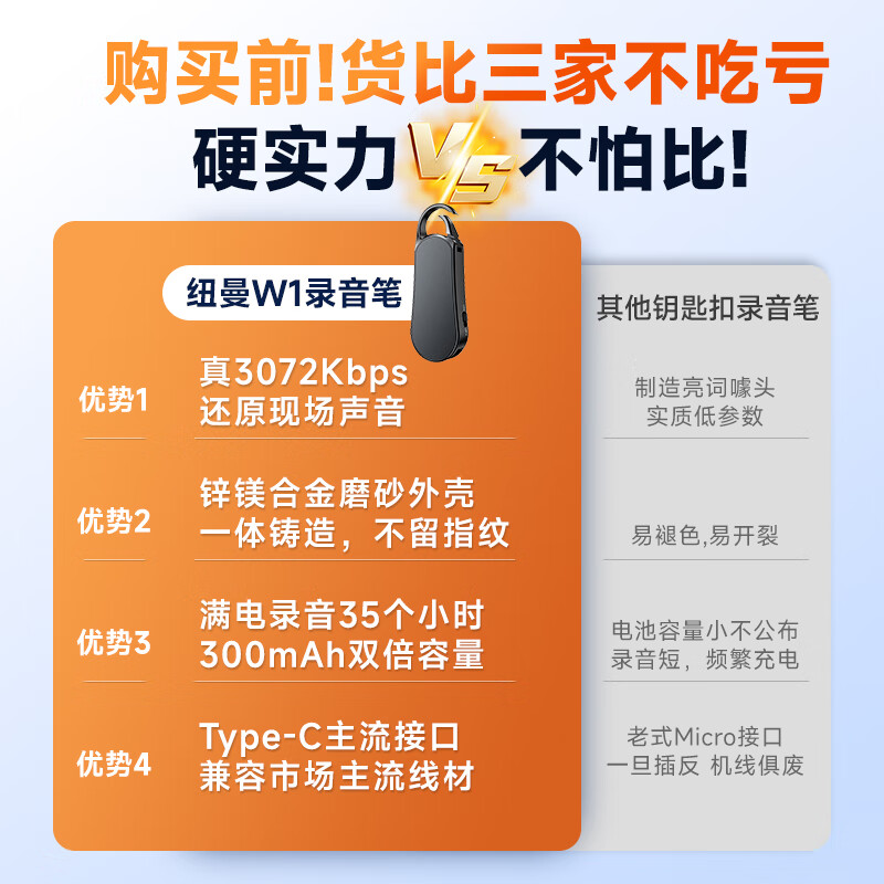 结语:如果你需要一款高性价比、功能全面且口碑卓越的录音笔,纽曼数码录音笔 W1 32G 无疑是最佳选择。立即点击上方链接,享受仅 169 元的优惠价,开启专业录音之旅。