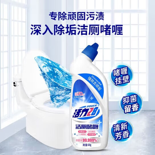 活力28洁厕啫喱是一款专为马桶设计的深层清洁、抑菌杀菌剂。采用独特配方,能够彻底去除污垢、霉斑与细菌,保持卫生间的洁净与清新。