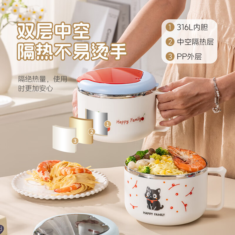 - 大容量设计:可容纳 500 ml 左右,满足日常中餐与小吃需求。