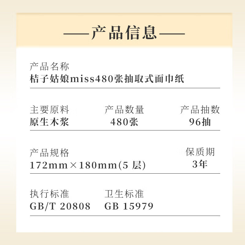 桔子姑娘大包抽纸 480张 超值优惠 仅 7.99 元