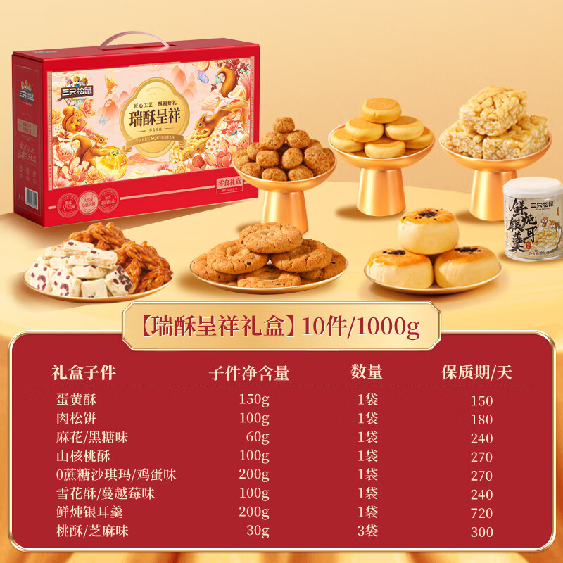 三只松鼠混合中式糕点礼盒1kg – 只需 59.9 元