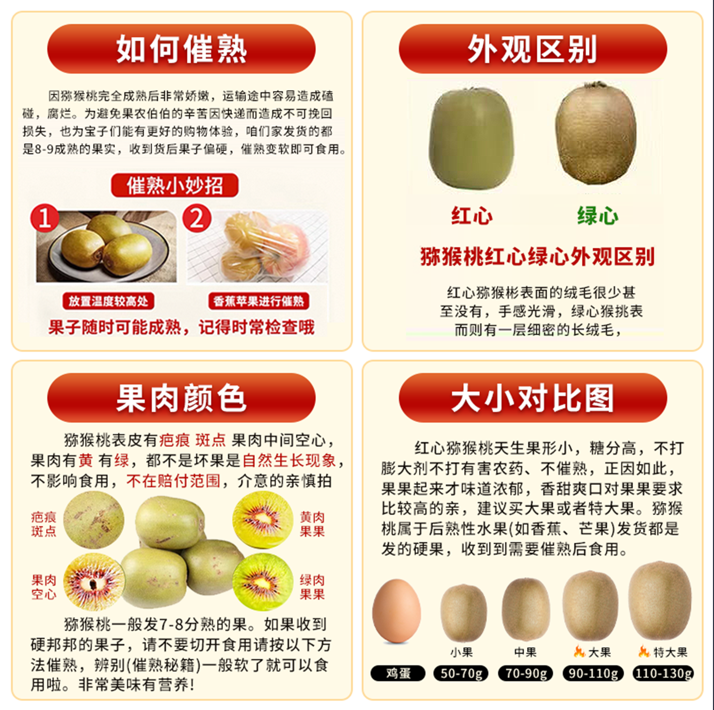 - 新鲜品质:每颗猕猴桃直采自果园,重量70-90g,颗粒饱满、汁水丰富。