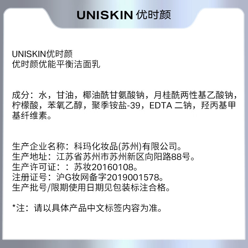 优时颜(UNISKIN)优能平衡洁面乳 100g – 现价 ¥150