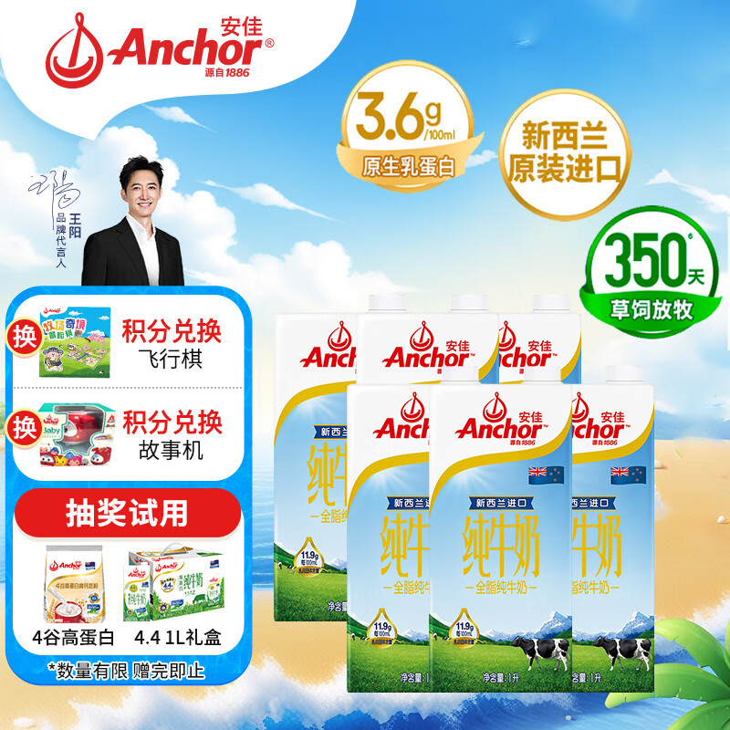 安佳全脂牛奶1L*6盒 — 新西兰草饲牛奶仅售79元