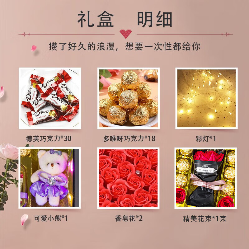 - 浪漫包装:专为七夕情人节设计的礼盒包装,浪漫甜蜜,适合送给女友、老婆、老师等亲友。