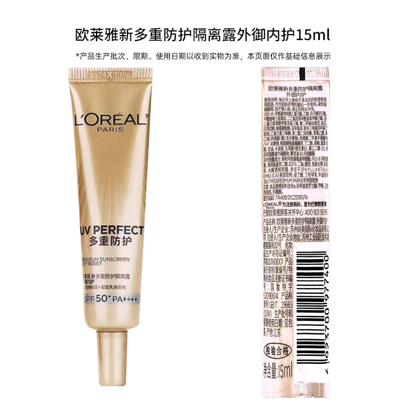 欧莱雅新多重防护隔离露小金管防晒15ml*4 仅售99元!临期清仓,马上抢购!