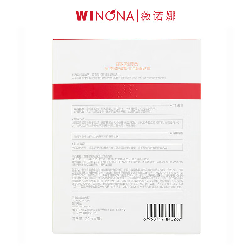 薇诺娜特护面膜舒敏丝滑面膜 6片 – 超值 168 元限时抢购