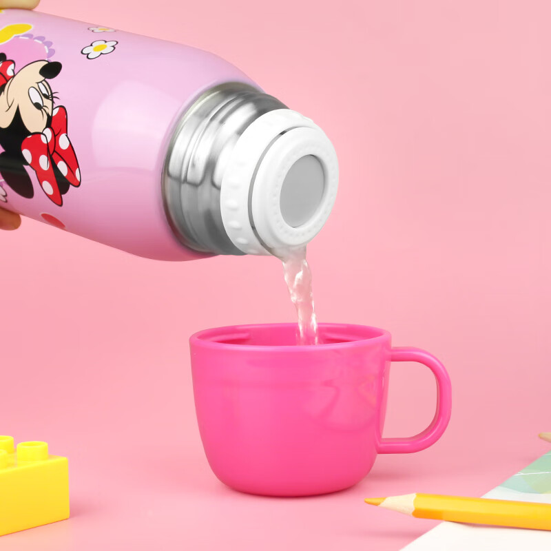 - 品牌 & 设计:迪士尼米妮粉色主题,适合中小学生使用,三盖多用途,兼具保温与防漏。