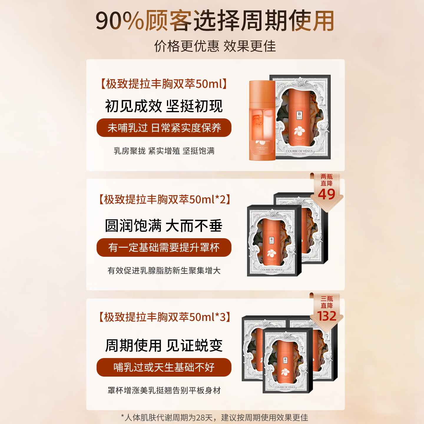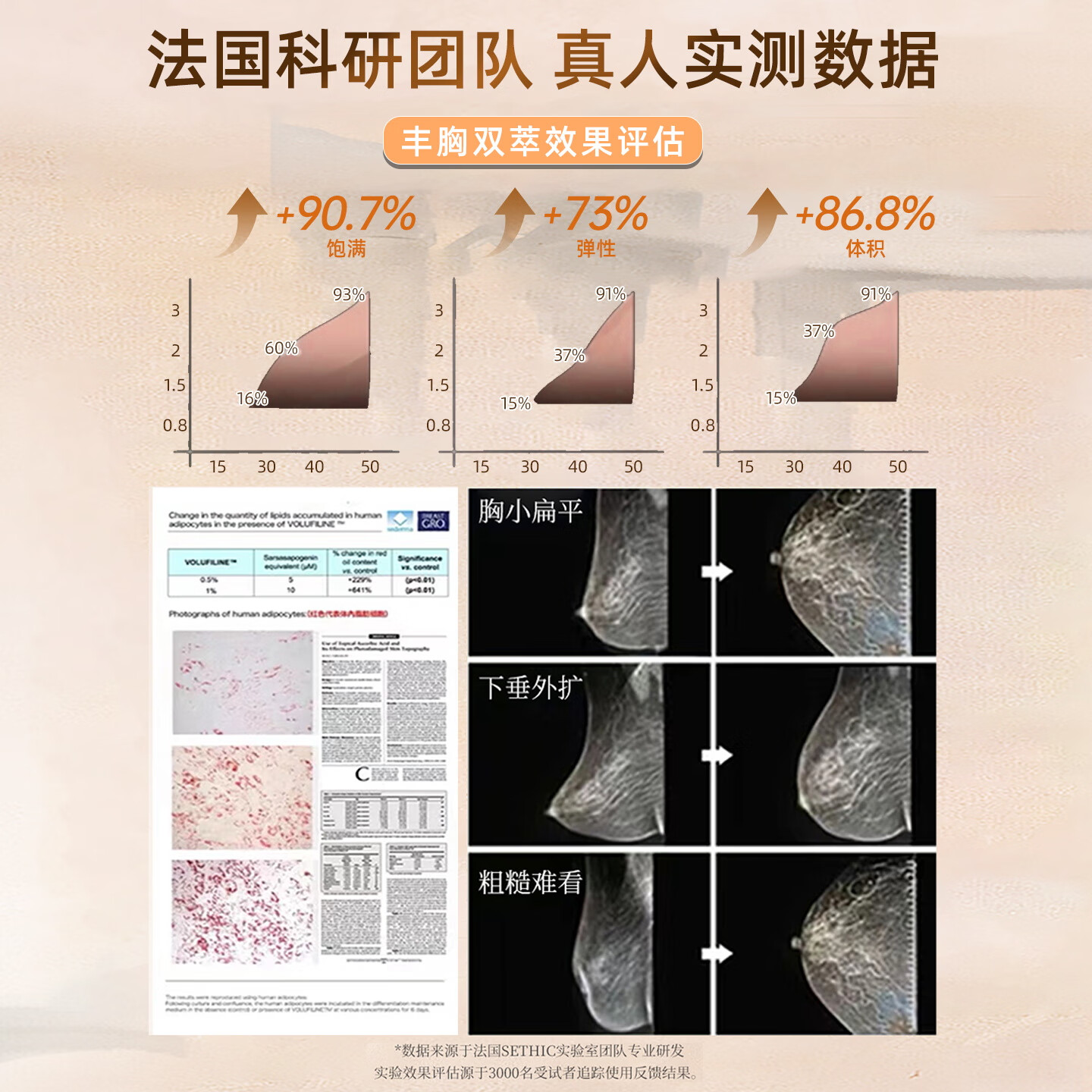 - 极速见效:使用后当晚即可感受到胸部轻微增大,后续使用可持续改善。
