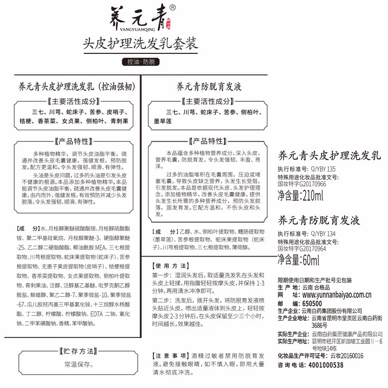 养元青洗发水云南白药强韧蓬松洗发露210ml*2+育发液60ml*2,现仅售129元,优质自营商品,7天无理由退货,98%好评率,赶快抢购!