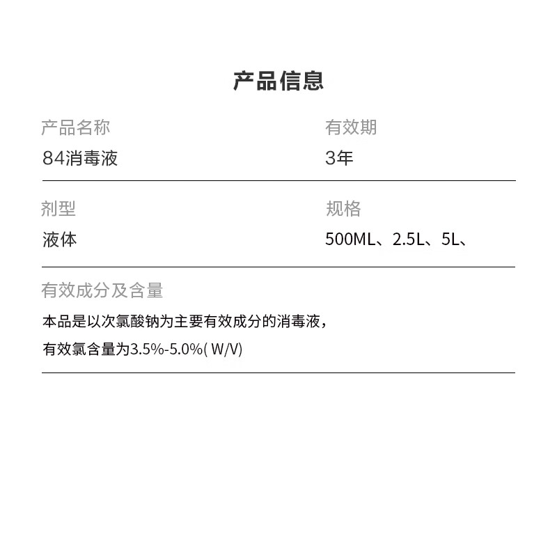 • 强力漂白与杀菌:配方含 84% 次氯酸钠,能在短时间内彻底除菌,保障人群健康。