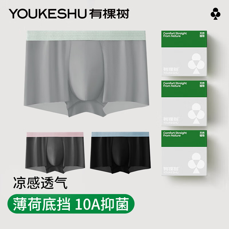 - 产品名称:有棵树冰丝男士内裤男10A抗菌薄荷底档透气吸湿速干青年平角四角短裤衩