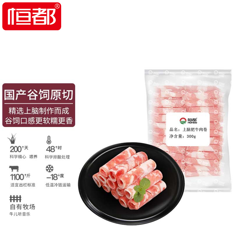 恒都国产谷饲原切上脑牛肉卷 300g – 仅售 57.8 元,火锅必备