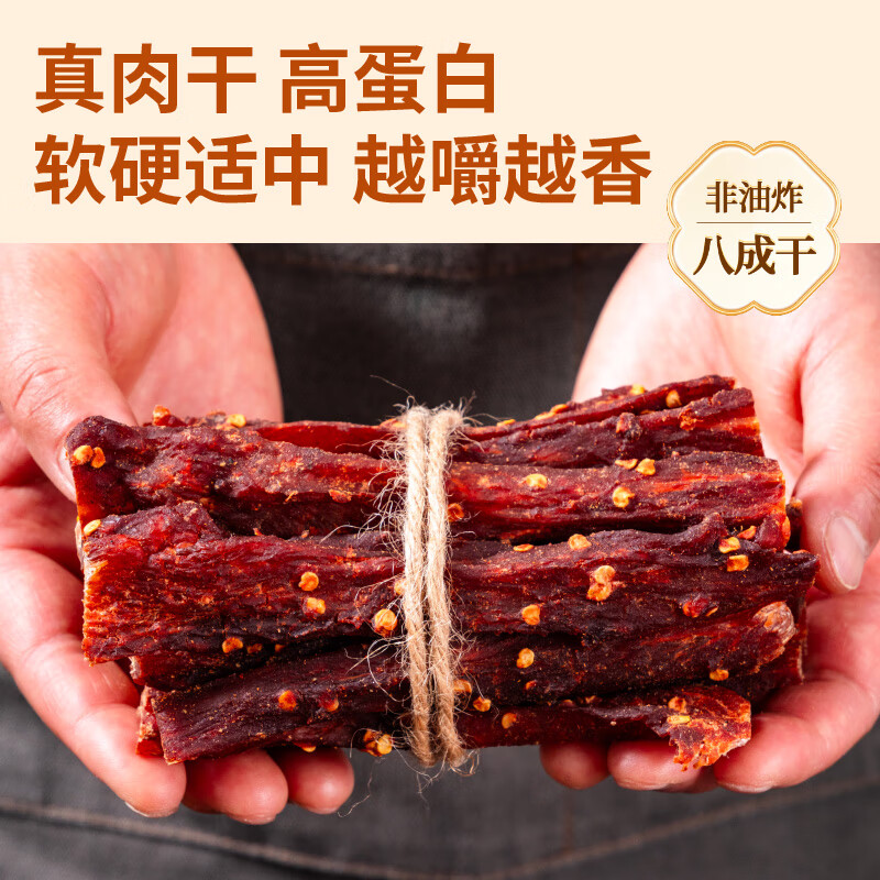 - 耐嚼口感:采用特殊烘干工艺,肉干保持咀嚼感,既能满足咬劲,又不失健康。