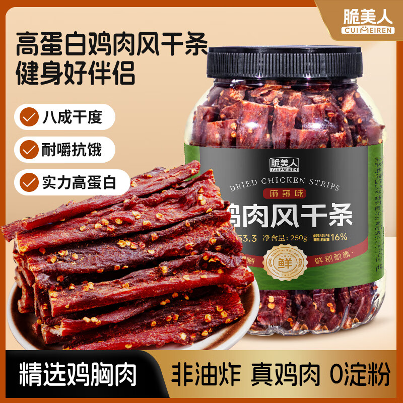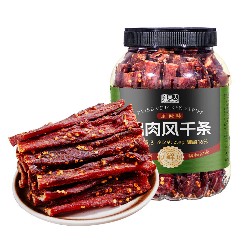 脆美人麻辣风干鸡胸肉干 250g 超值优惠仅售 31.6 元!