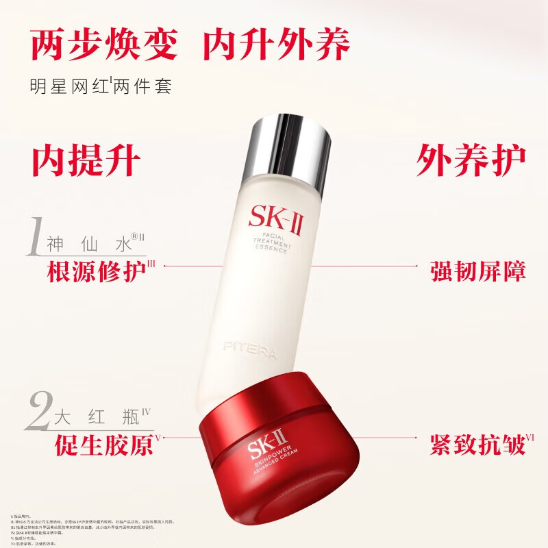 这款套装包含230ml神仙水与50g面霜,融合SK‑II独有的PIT™技术,为肌肤带来深层补水与紧致。现在仅需2610元,相比原价2760元已减价160元。
