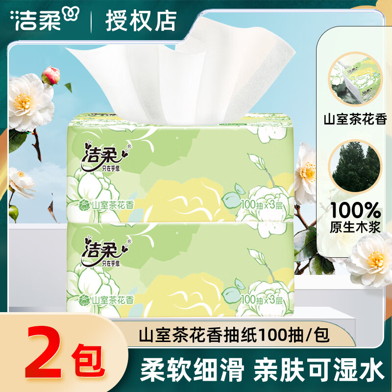 洁柔抽纸山室茶花香纸巾 100抽整箱,3层柔软亲肤,限时仅售15元
