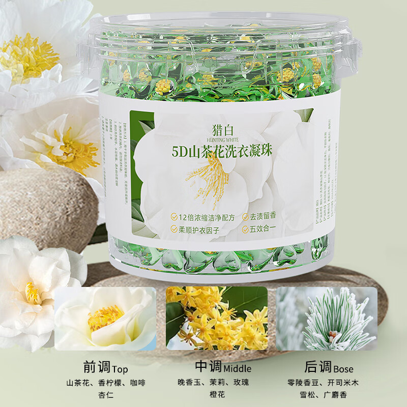 猎白山茶花洗衣凝珠 5合一持久留香,现价 33.9