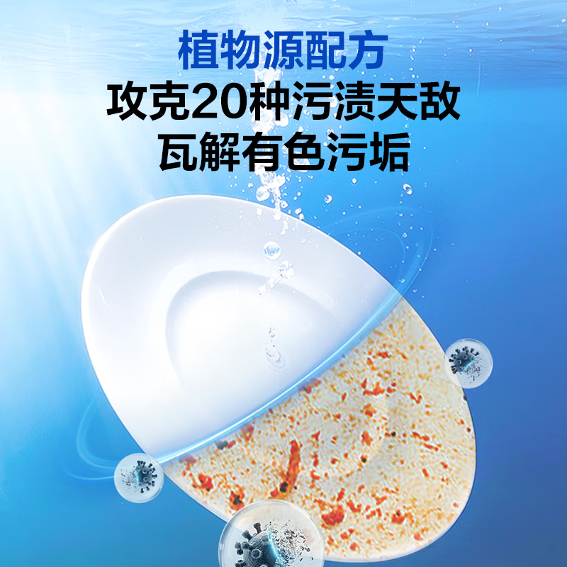 - 强效净澈:一次性去除油渍,让碗盘如新。