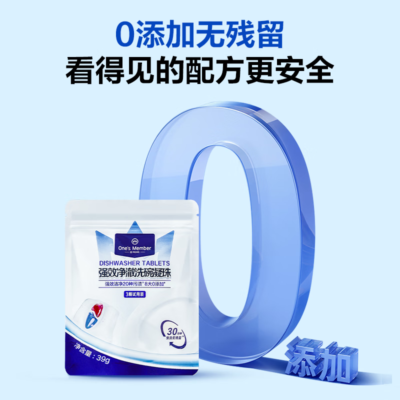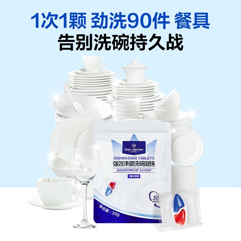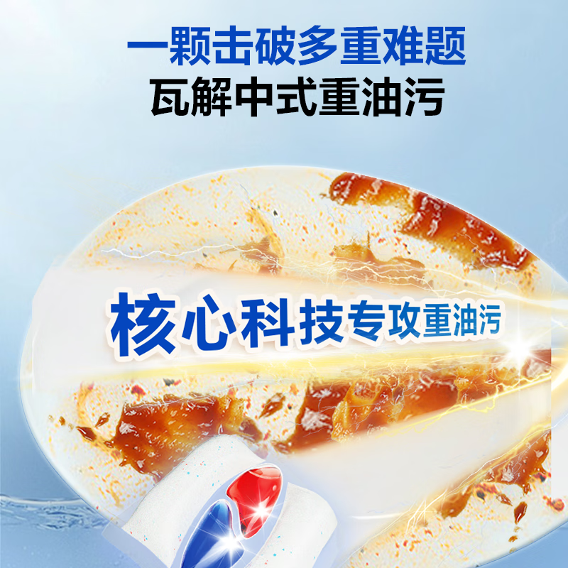 - 四合一配方:洗碗机洗涤剂 + 洗碗粉块 + 清洁剂 + 消臭剂,三颗一包,省去多种产品。