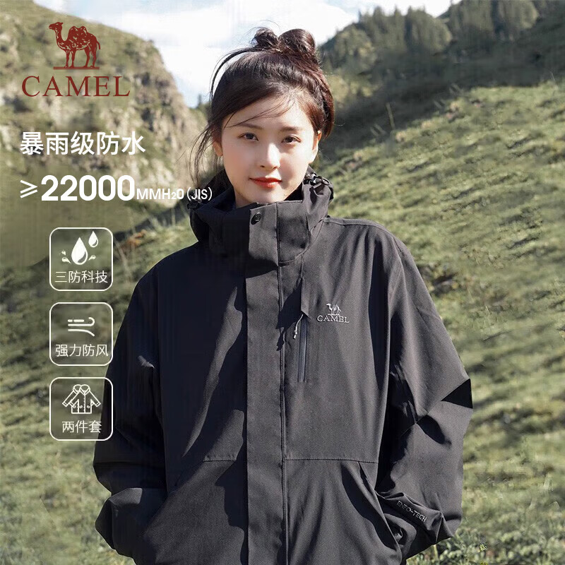 骆驼CAMEL三合一冲锋衣——黑色户外防雨防风服,现价仅639元