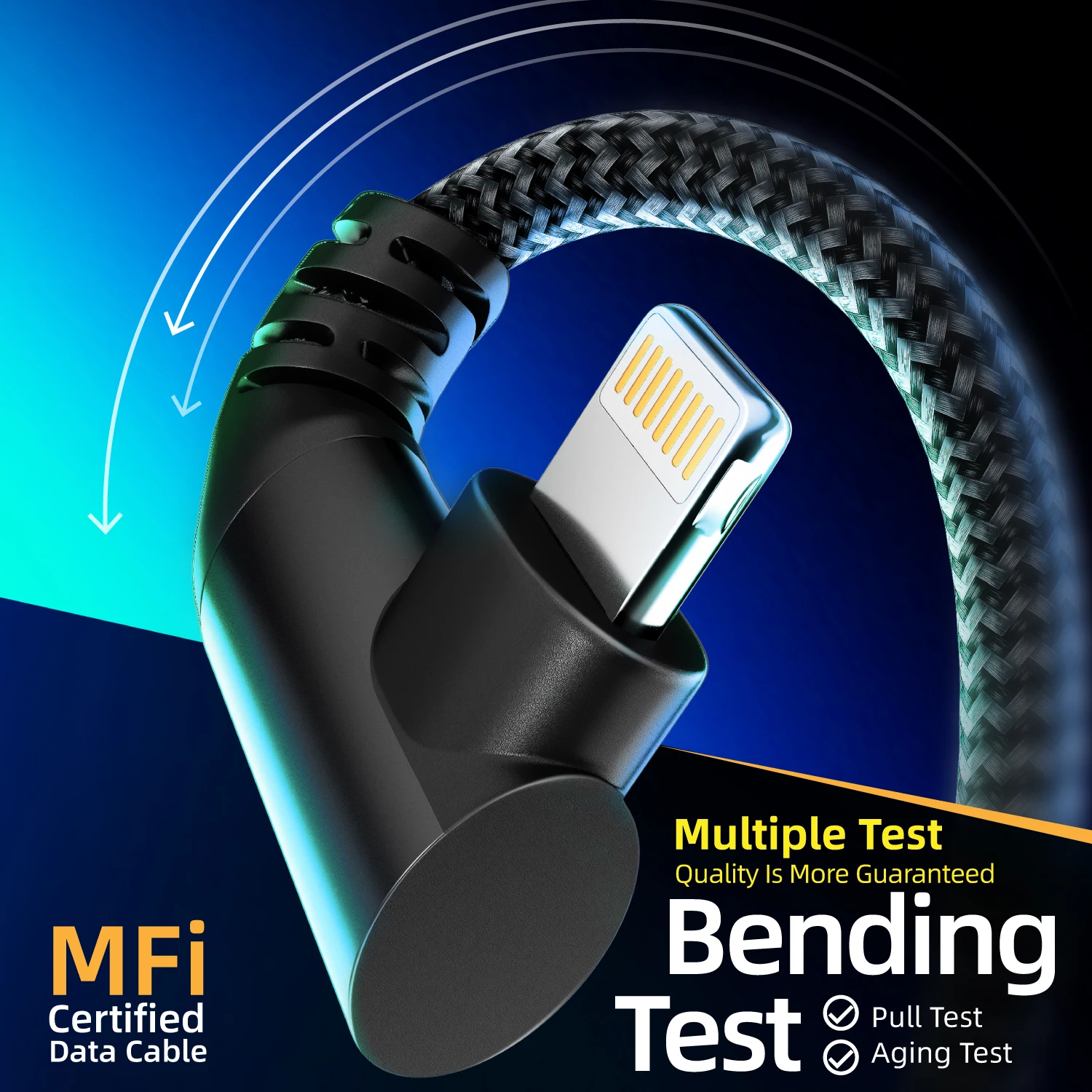 $3.77 90° Right Angle MFi Certified USB Lightning Cable for iPhone 14 – 1m/2m/3m Options