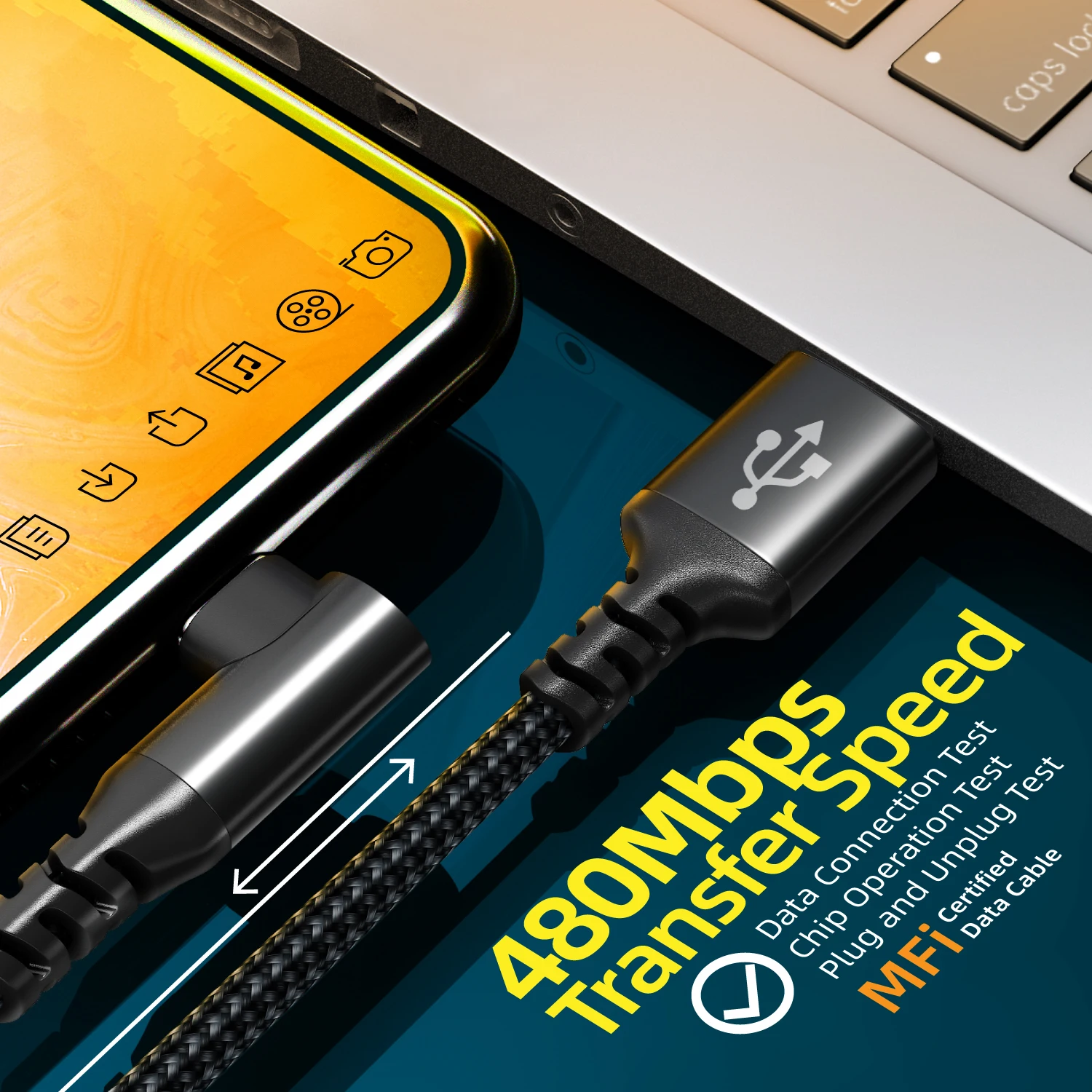 $3.77 90° Right Angle MFi Certified USB Lightning Cable for iPhone 14