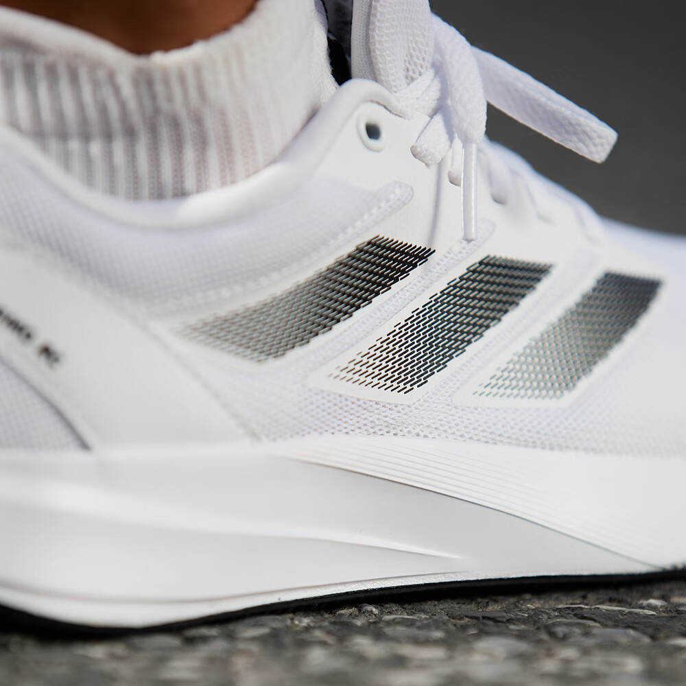 adidas DURAMO RC 训练备赛轻盈体测跑鞋专为训练与备赛设计,采用轻量化材料与通风结构,提供卓越的跑步体验。无论是高强度训练还是日常练习,这双鞋都能带来舒适与稳定的支持。