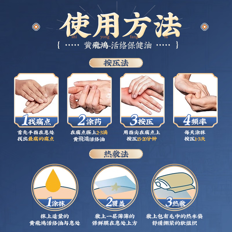 - 洗手后,将适量活络油涂抹于疼痛部位。