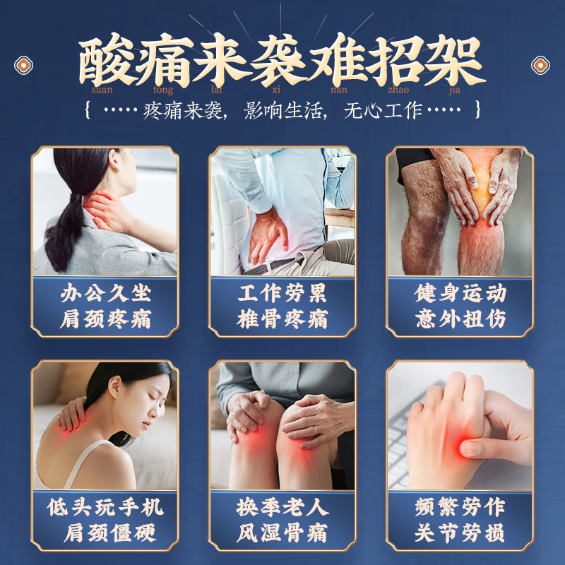 - 多效合一:舒筋活血、化瘀止痛、消肿止痛。
