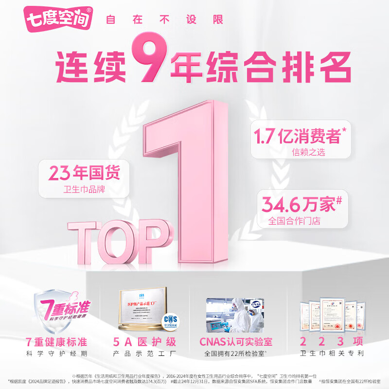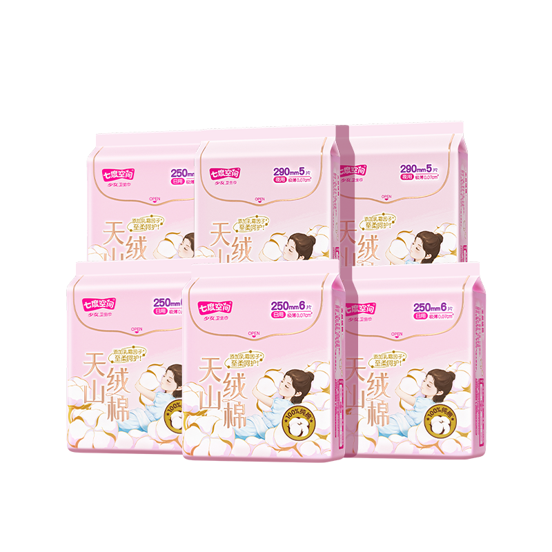 产品名称:七度空间天山绒棉纯棉亲肤极薄透气日夜组合卫生巾