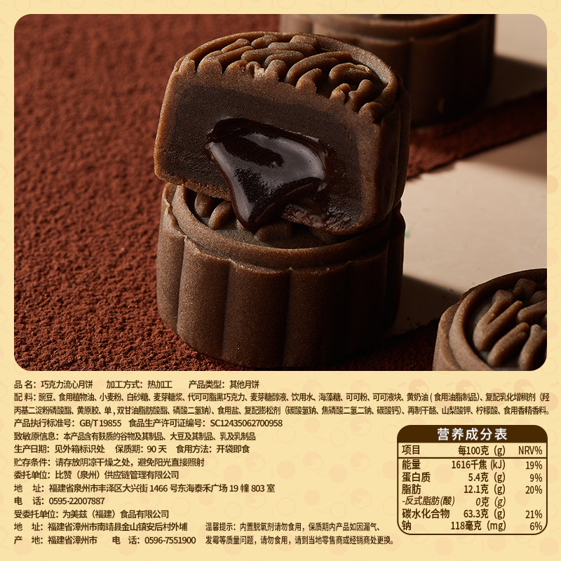 比比赞巧克力流心月饼540g12枚 – 中秋节老式传统糕点