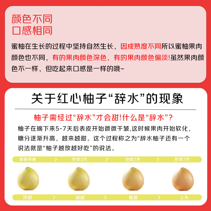 - 产地保障: 福建是著名农业产区之一,这里的气候条件非常适合红心蜜柚生长;