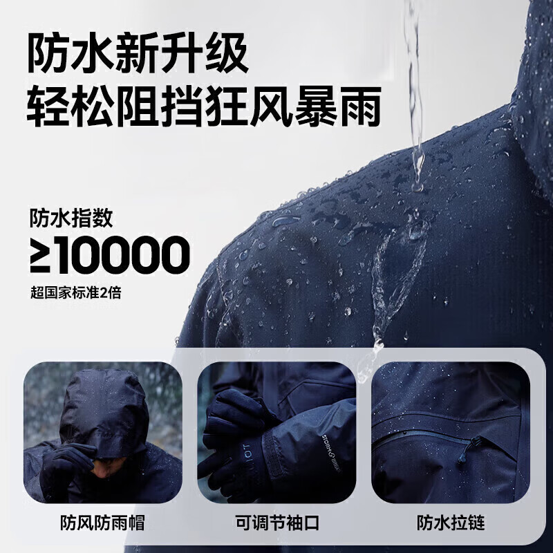 - 实用功能:包括可拆卸内胆设计,可根据温度变化自由组合穿脱;腋下透气拉链设计,在炎热天气中保证空气流通。