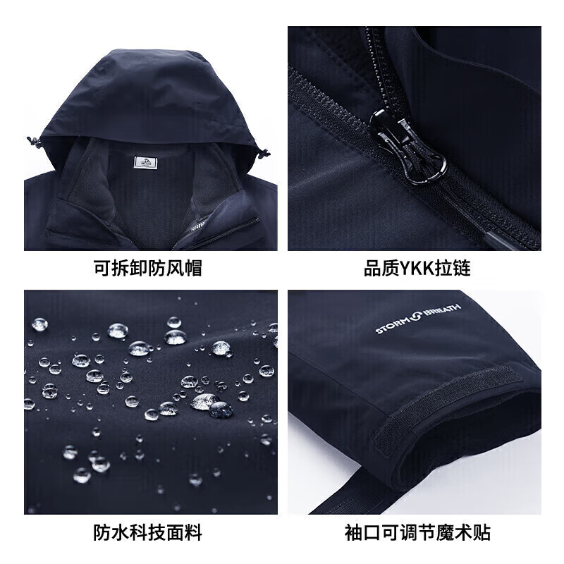 - 多功能设计:此款冲锋衣为三合一体,适合在春季、秋季等多变气候中穿着。可以根据气温调整搭配方式。