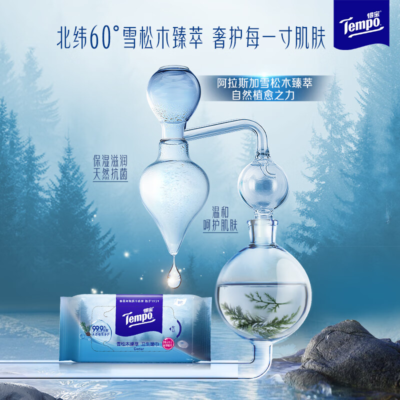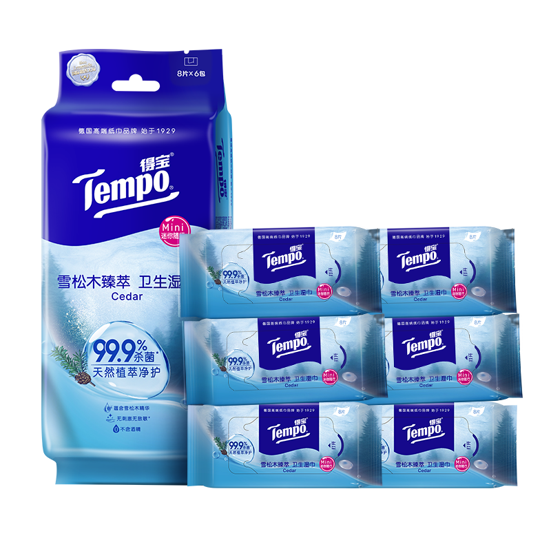 得宝(TEMPO)迷你雪松木湿巾,杀菌率高达99.9%,限时优惠价只需9.9元!