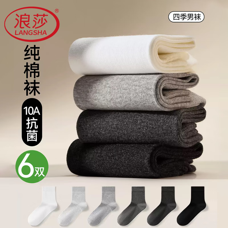 浪莎男士抗菌舒适透气全棉休闲商务男袜