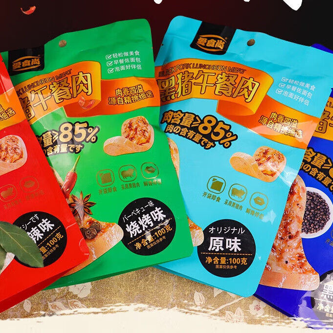 这款爱食尚的黑猪午餐肉,精选优质黑猪肉制作而成,保留了猪肉原始的味道和营养成分。它有着独特的口感,肉质细腻且富有嚼劲,非常适合搭配速食面或作为零食食用。