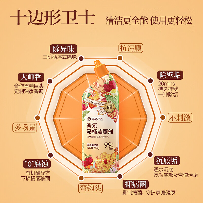 网易严选香氛洁厕剂是一款集去垢、除臭和杀菌功能于一身的高品质浴室清洁用品。该产品采用先进的净味技术,有效去除卫生间异味,同时配合高效的泡沫配方能够快速溶解顽固污渍。