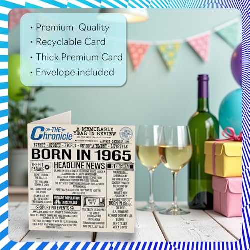 The Birthday Card 59 is a unique and humorous card designed specifically for adult birthdays in 1965 style. It features a funny retro newspaper design that will surely make the recipient laugh.