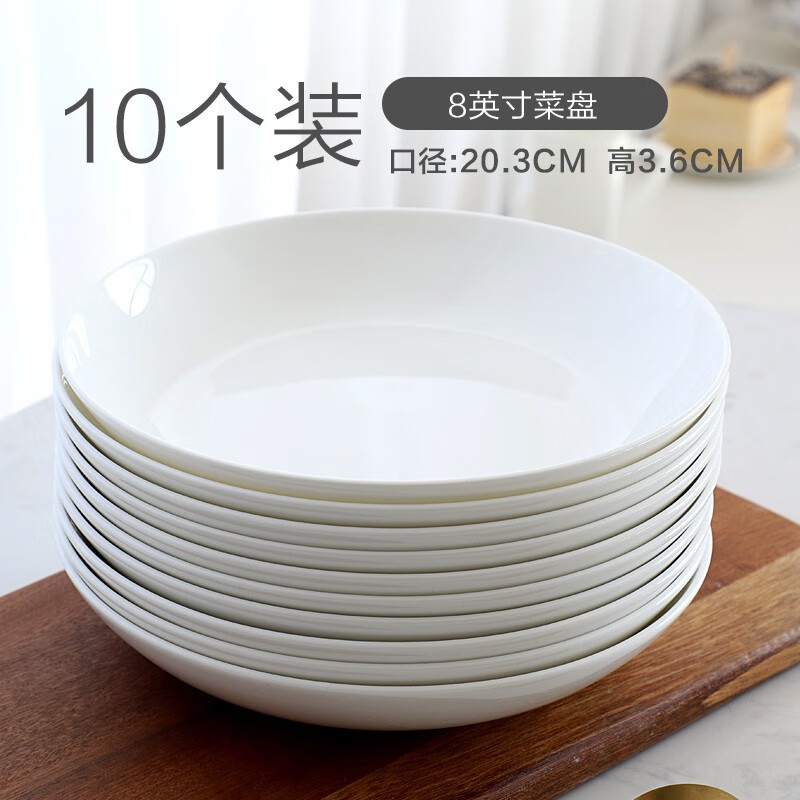 产品名称:瓷侠客盘子菜盘家用白色骨瓷餐具碟子陶瓷餐盘套装骨碟饺子盘深盘饭盘 8英寸常用菜盘(10个装)