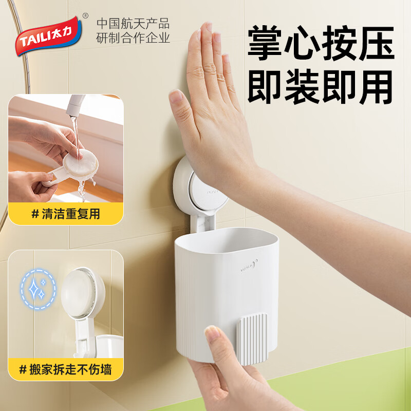 这款太力吸盘牙刷杯架置物架专为卫生间设计,采用壁挂式安装方式,无需打孔即可轻松固定。它不仅方便了日常使用,还提升了卫生间的整体美观度。