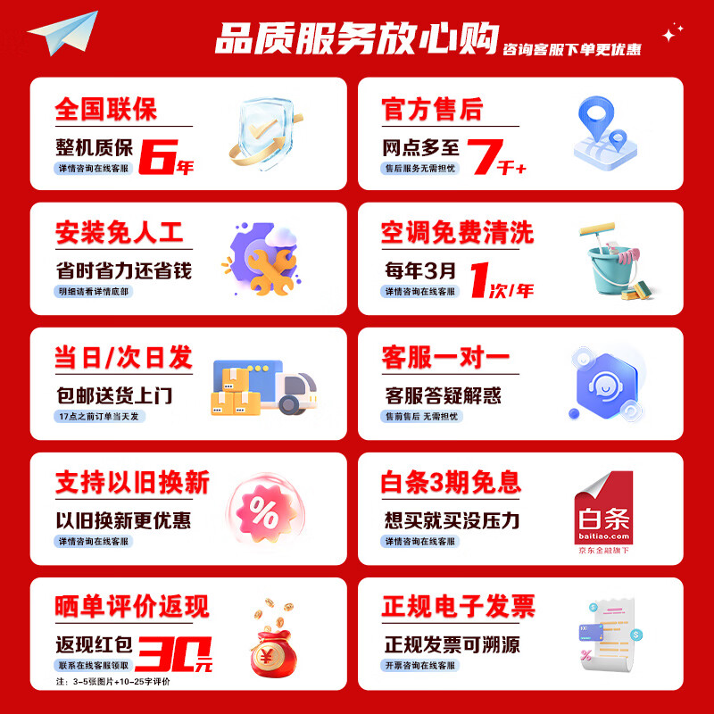 - 变频技术:搭载先进的变频技术,能够快速调整运行频率,在保障舒适的同时减少耗电量,实现静音、节能的双重效果。