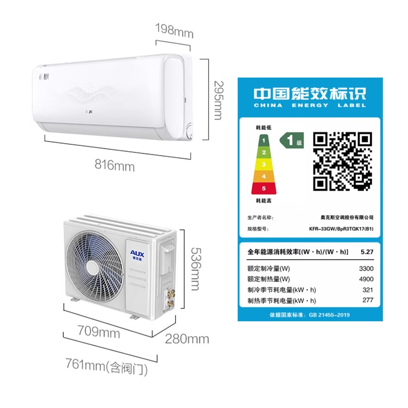 - 高效节能:这款奥克斯空调采用了一级能效设计,无论是在制冷还是制热模式下都能有效节约能源,让您的家庭用电更加经济实惠。