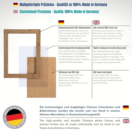 - High-quality MDF wood frame with laminated finish, clear acrylic glass, and HDF back panel for stability.