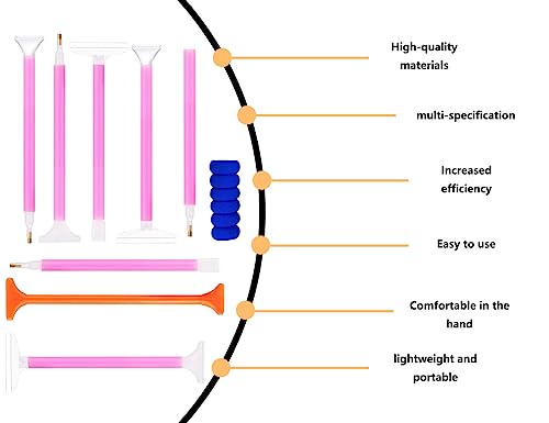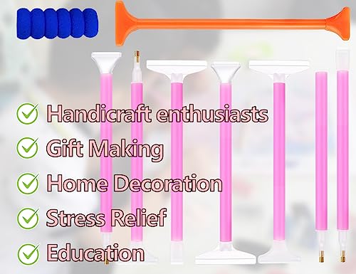 • Inclusive Kit: Includes seven unique diamond painting pens, one sponge handle, and one eraser pencil.
