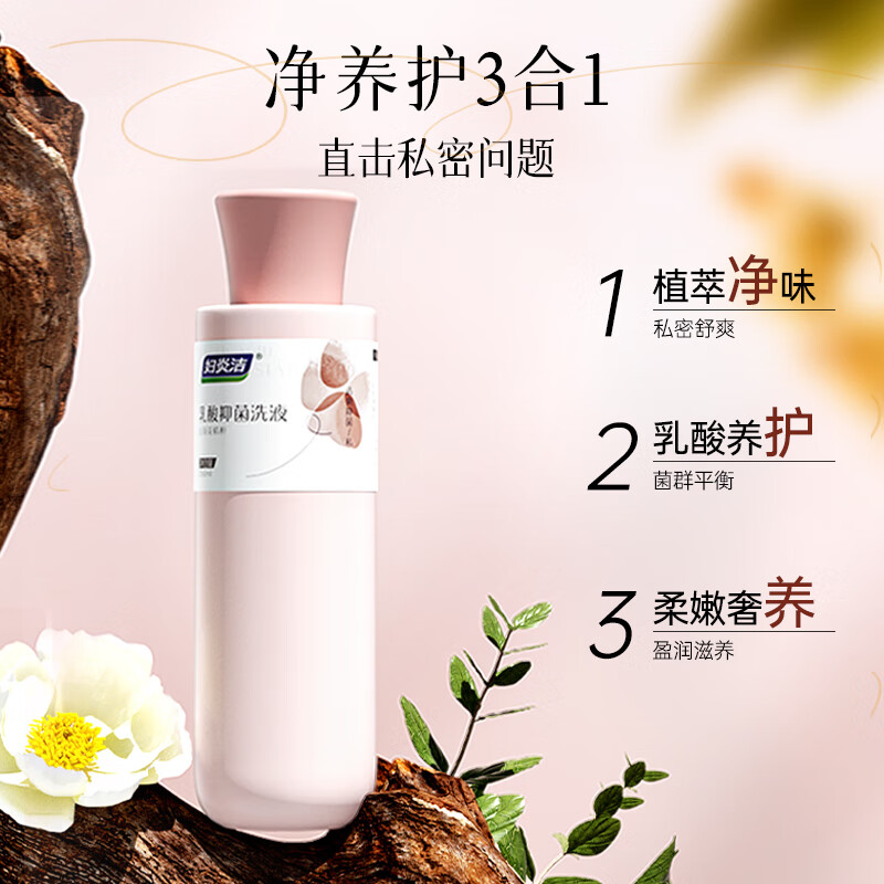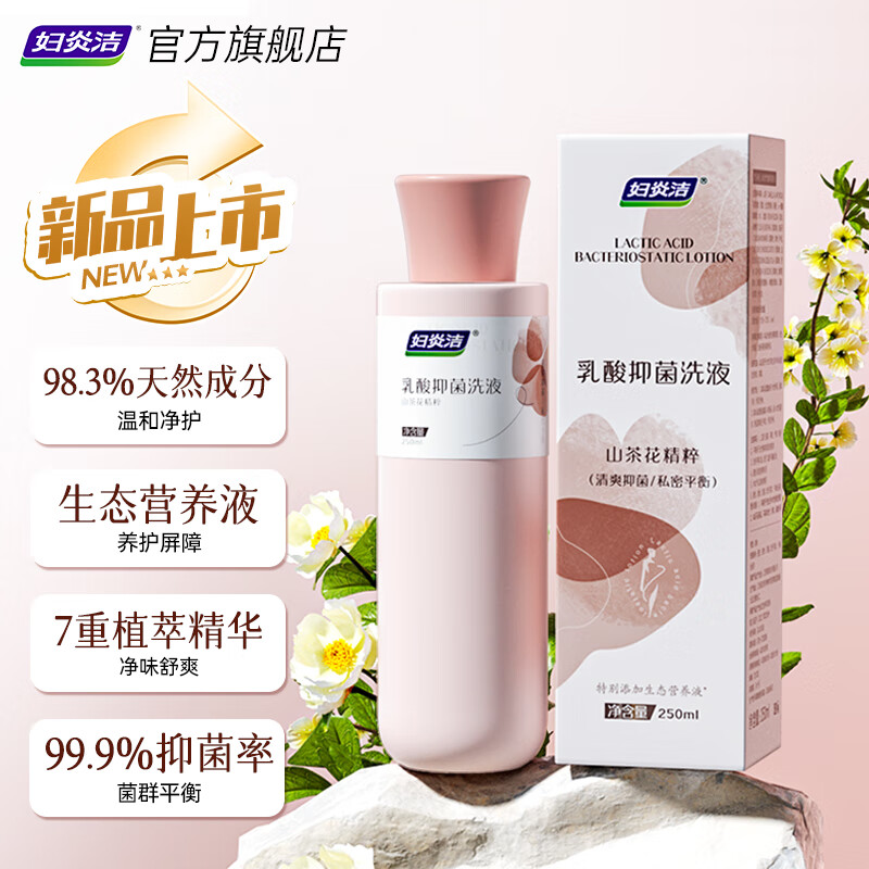 妇炎洁山茶花乳酸抑菌私处洗液,女性专用日常护理必备。