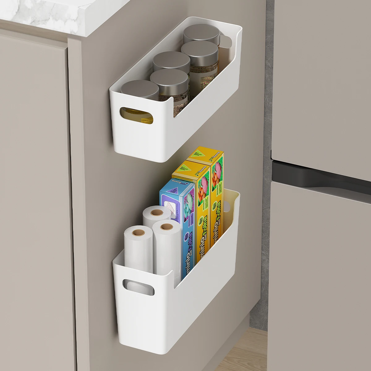 Are you tired of cluttered and messy kitchen cabinets? Say goodbye to the chaos with the WORTHBUY Wall Mounted Cabinet Plastic Storage Rack! This multifunctional storage rack is designed to help you maximize your fridge door space without any drilling, making it an essential tool for anyone looking to organize their kitchen efficiently.